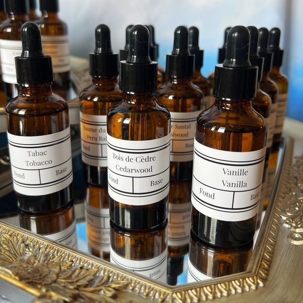 Nous vous aidons ensuite à mélanger vos parfums personnalisés, et chaque personne se retrouve avec son propre parfum et son propre flacon personnalisés ! Dans la grande région de Montréal, ou partout dans le monde sur Zoom.